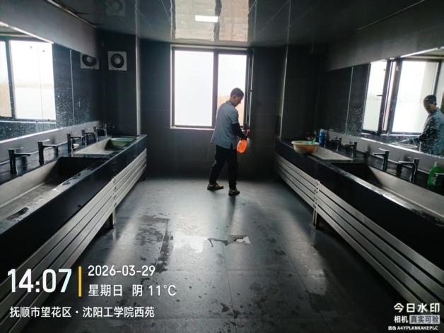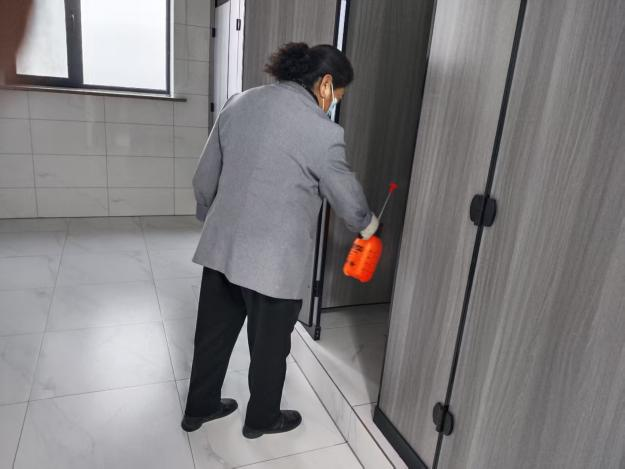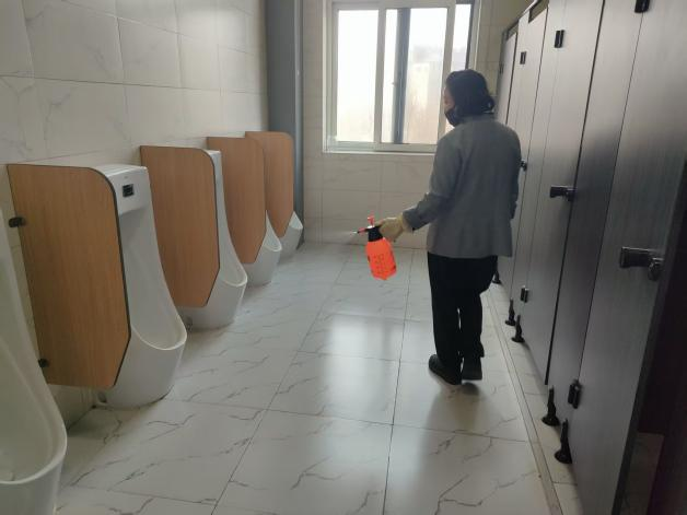 在消杀作业中,后勤保卫处工作人员精准施策,针对不同区域的特点采取差异化消毒方式。对于楼内的楼梯扶手、门把手、课桌椅表面、办公桌台面、电梯按钮等师生高频接触部位,工作人员选择在课间、下班等错峰时段,采用擦拭消毒,确保不留死角、不留盲区,有效阻断诺如病毒、流感病毒等通过接触传播的途径;在公共卫生间、走廊、楼道等开放空间,工作人员则利用学生上课期间的空档时间,采用含氯消毒剂进行全方位喷洒,重点对便池、下水道口、洗手台、拖布池等易滋生细菌和病毒的区域进行深度消杀,从源头减少病菌滋生风险。